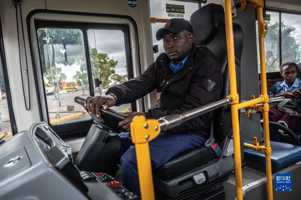 6月3日,肯尼亞電動(dòng)巴士公司駕駛員駕駛電動(dòng)巴士行駛在內羅畢街頭。