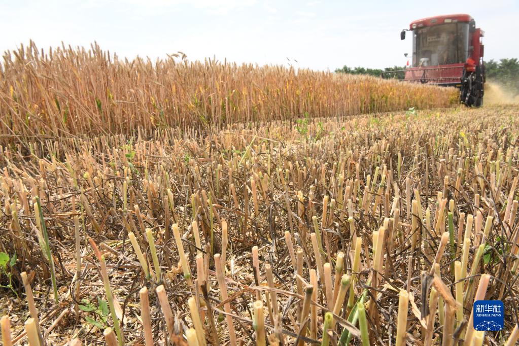 6月4日,在河北省邯鄲市廣平縣廣平鎮侯固寨村,農民駕駛農機收獲小麥。