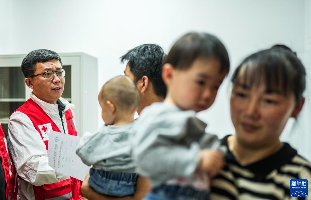 6月6日,在關(guān)嶺布依族苗族自治縣中醫醫院,紅十字志愿團隊工作人員和家長(cháng)溝通。