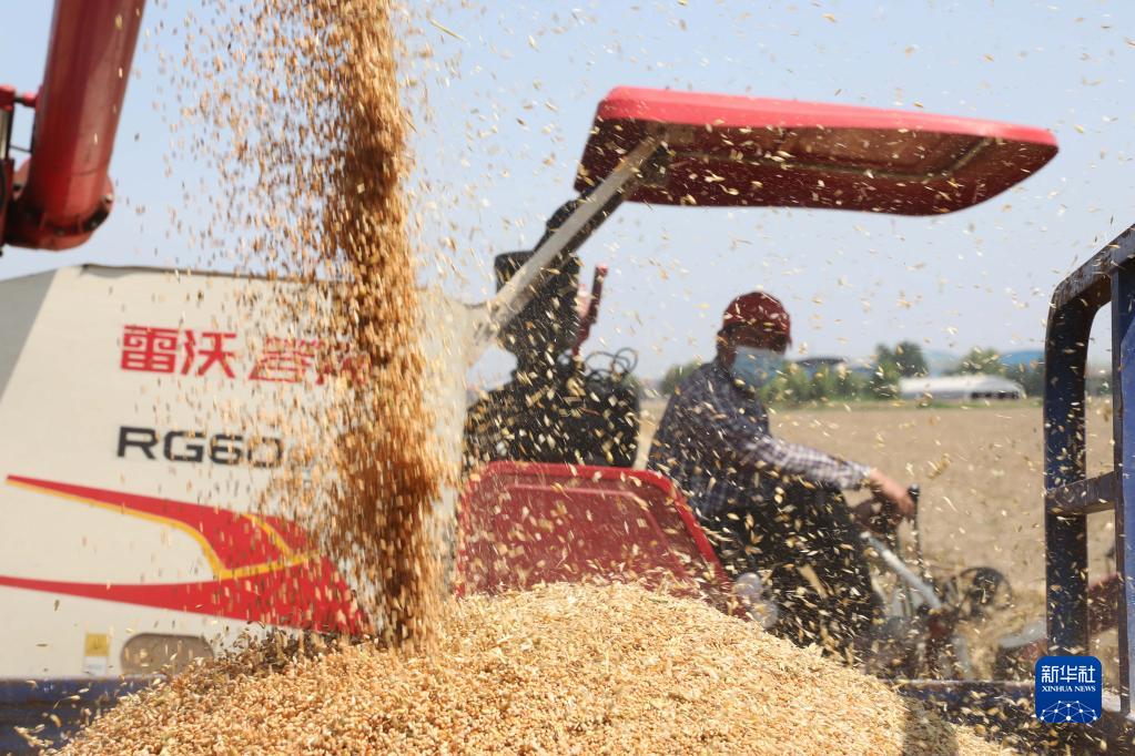 6月6日,農機手駕駛收割機在河南省焦作市武陟縣謝旗營(yíng)鎮蒯村收獲小麥。