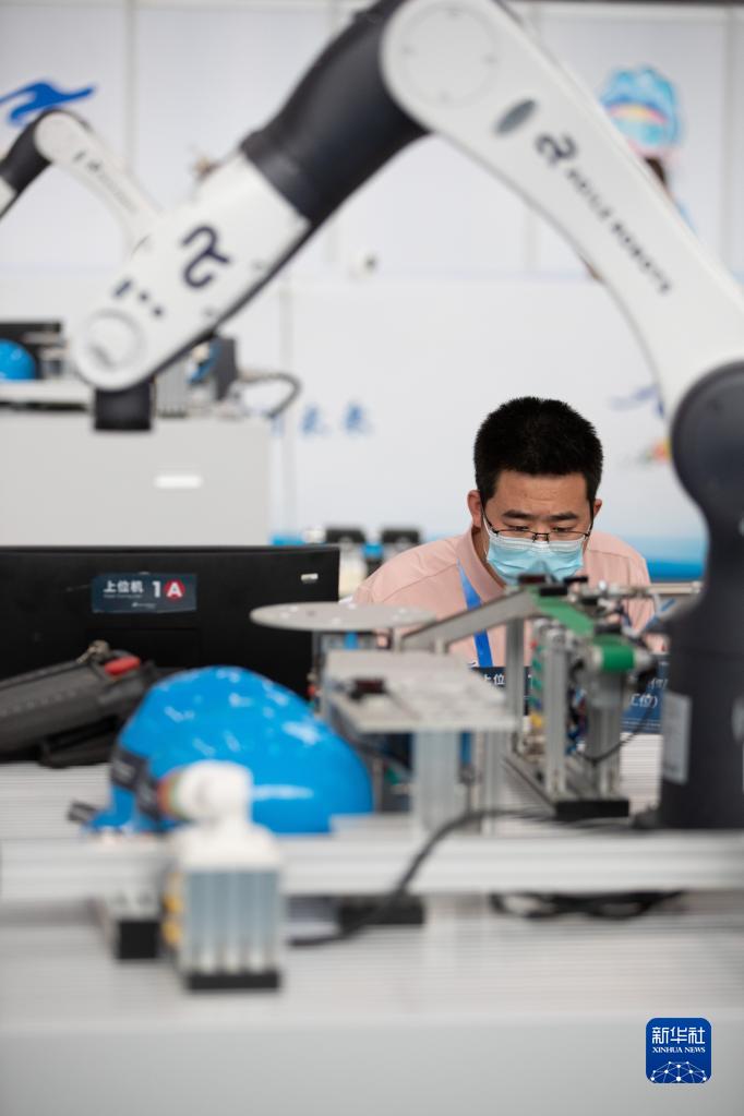6月6日,選手在進(jìn)行工業(yè)機器人系統操作員項目比賽。