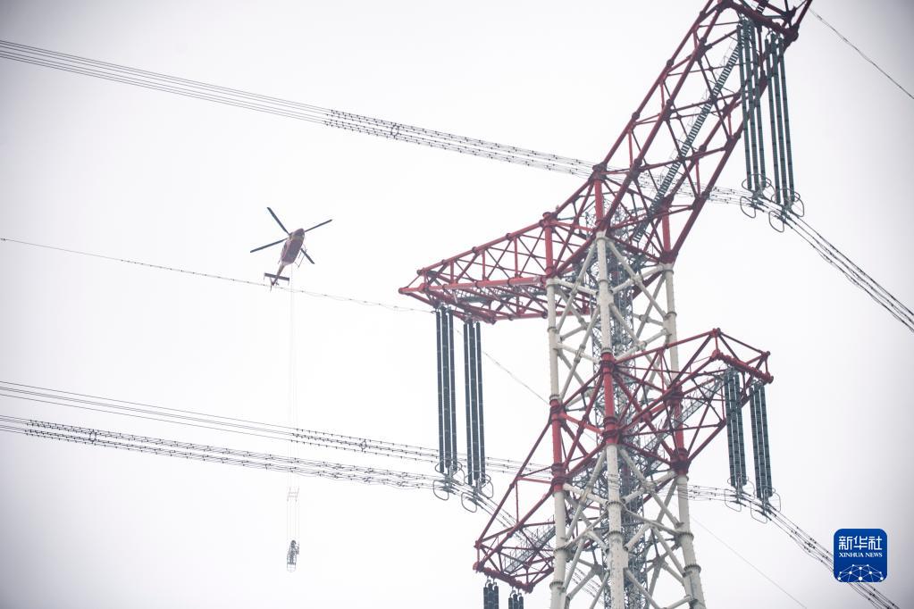 安徽:直升機助力跨江輸電“大動(dòng)脈”帶電檢修