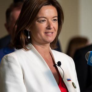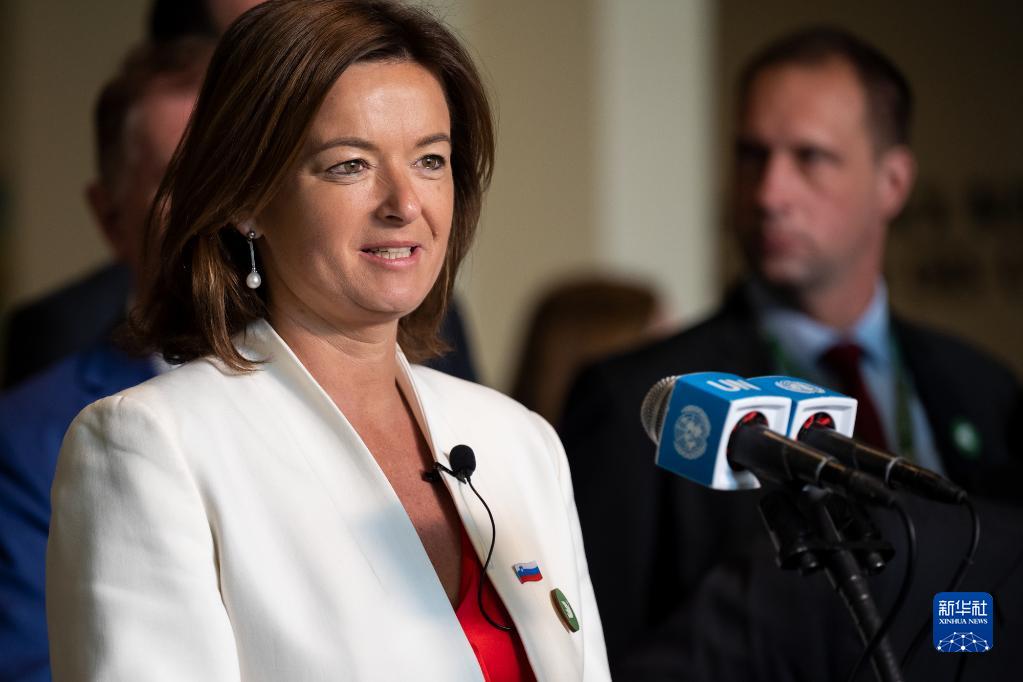 6月6日,在位于紐約的聯(lián)合國總部,斯洛文尼亞外長(cháng)塔尼婭·法永在斯洛文尼亞當選聯(lián)合國安理會(huì )非常任理事國后在記者見(jiàn)面會(huì )上講話(huà)。