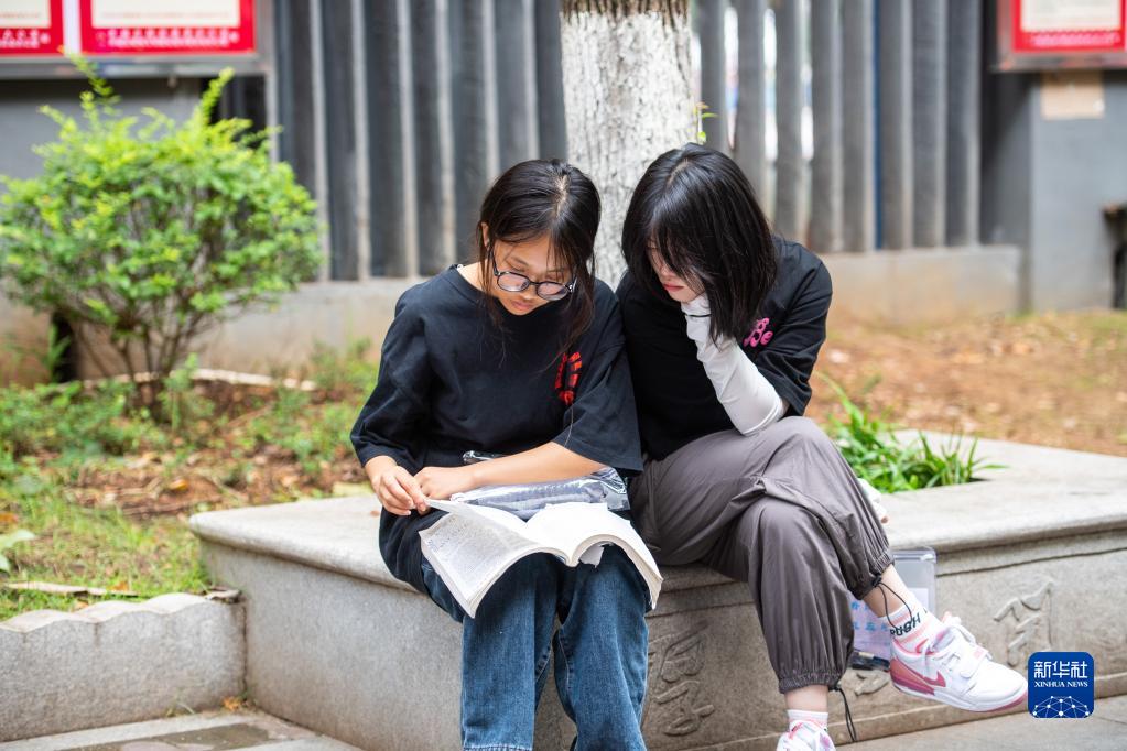 6月7日,在湖南長(cháng)沙市第一中學(xué)考點(diǎn),考生在考場(chǎng)外復習。