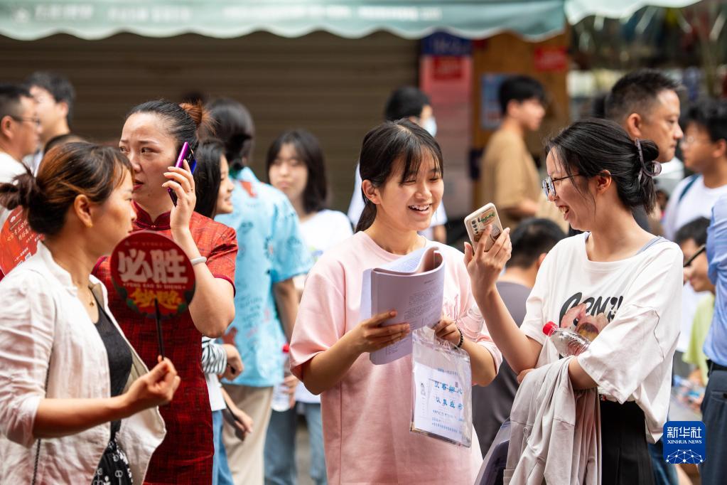 6月7日,在湖南長(cháng)沙市第一中學(xué)考點(diǎn),考生在考場(chǎng)外和同學(xué)聊天。