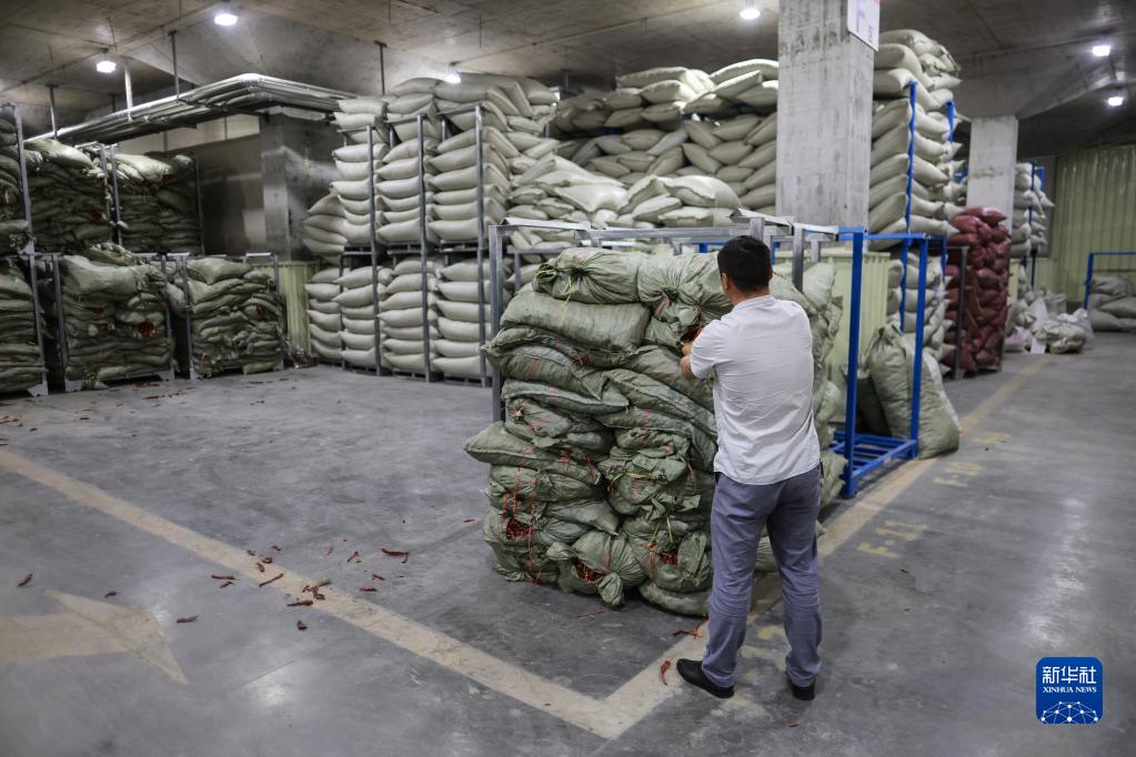 6月6日,一名工人在中國辣椒城的冷庫內清點(diǎn)辣椒。