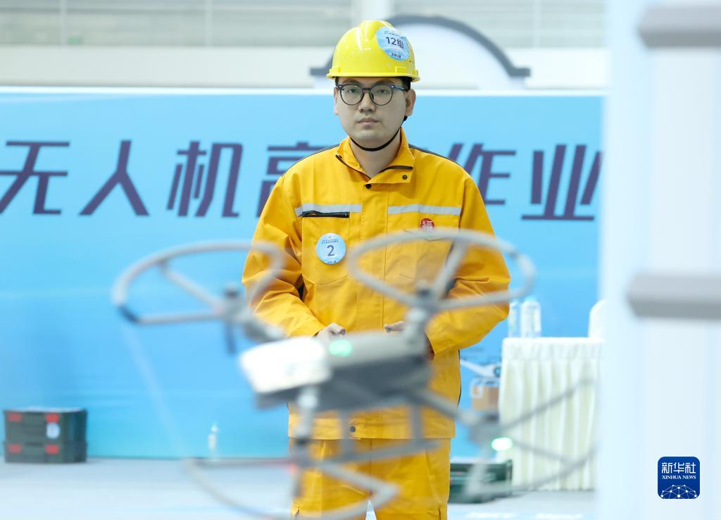 6月7日,參賽選手在無(wú)人機操作員項目的比賽中。