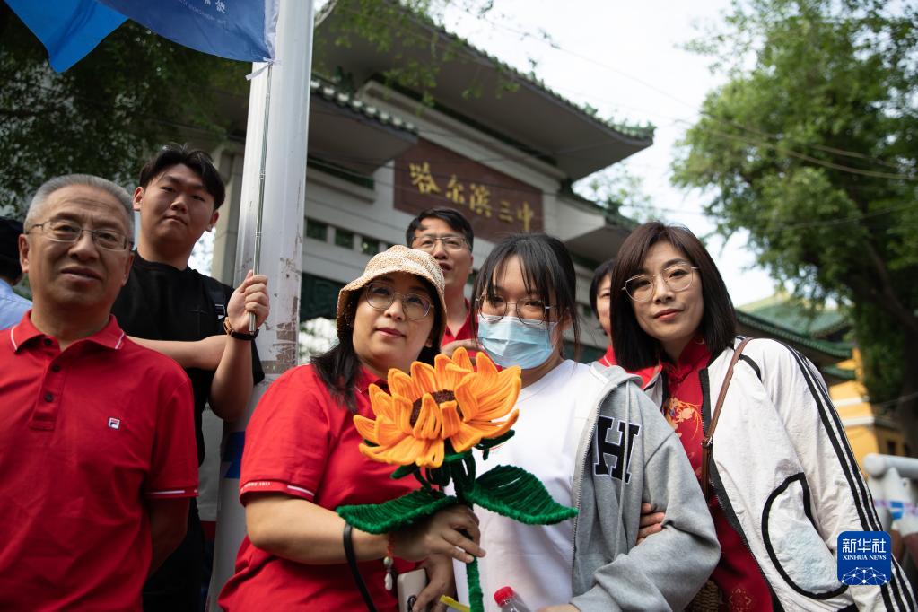 6月7日,在哈爾濱市第三中學(xué)考點(diǎn),考生在入場(chǎng)前合影留念。
