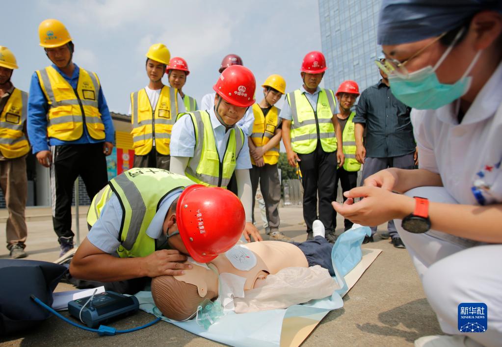 今年6月是第22個(gè)全國“安全生產(chǎn)月”,中鐵十局城軌公司在江蘇蘇州軌道交通8號線(xiàn)時(shí)代廣場(chǎng)站建設工地開(kāi)展形式多樣的主題活動(dòng),內容包括急救知識培訓、安全生產(chǎn)警示教育、高溫防護知識講座、心肺復蘇實(shí)操等,旨在強化建筑工人安全生產(chǎn)意識,提升突發(fā)事件應急處置能力。