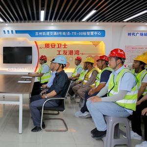 6月7日,在蘇州軌道交通8號線(xiàn)時(shí)代廣場(chǎng)站建設工地,建筑工人參加心肺復蘇實(shí)操培訓。