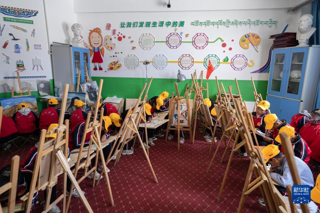 6月5日,扎西宗鄉完全小學(xué)的學(xué)生在上美術(shù)課。新華社記者 費茂華 攝