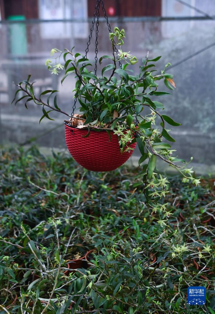 6月8日,這是諸暨市東白湖鎮的鐵皮石斛有機種植基地里種植的鐵皮石斛盆栽。