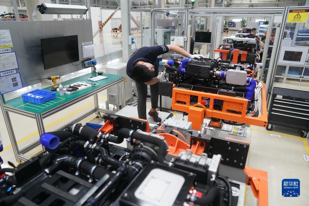 6月7日,在位于常熟的江蘇重塑能源科技有限公司,員工在生產(chǎn)線(xiàn)上組裝氫燃料電池系統。
