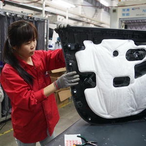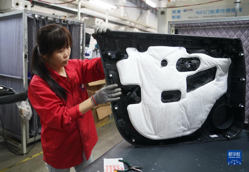 6月7日,在江蘇常熟汽飾集團生產(chǎn)車(chē)間,工人在生產(chǎn)汽車(chē)門(mén)內護板。