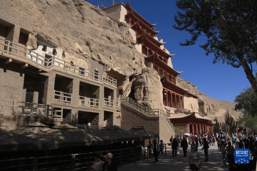 6月8日,游客在世界文化遺產(chǎn)地莫高窟參觀(guān)游覽。