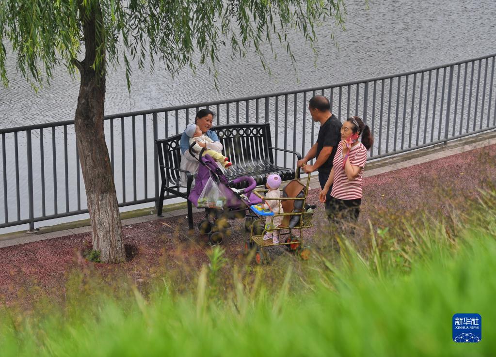 6月1日,瀘州市民在玉帶河邊休閑散步。位于瀘州市區的玉帶河屬沱江一級支流,全長(cháng)約5.2公里,沿河兩岸居住人口約10萬(wàn)人。玉帶河原為一條小溪溝,隨著(zhù)城市的發(fā)展,逐漸成為城市建成區內的狹小雨污排放通道,形成黑臭水體,破壞城市環(huán)境,群眾反映強烈。近年來(lái),經(jīng)過(guò)源頭治理、系統治理、綜合治理,玉帶河水質(zhì)得到明顯改善,2017年,退出城市黑臭水體,公眾測評滿(mǎn)意度達97%,成為市民休閑走廊。