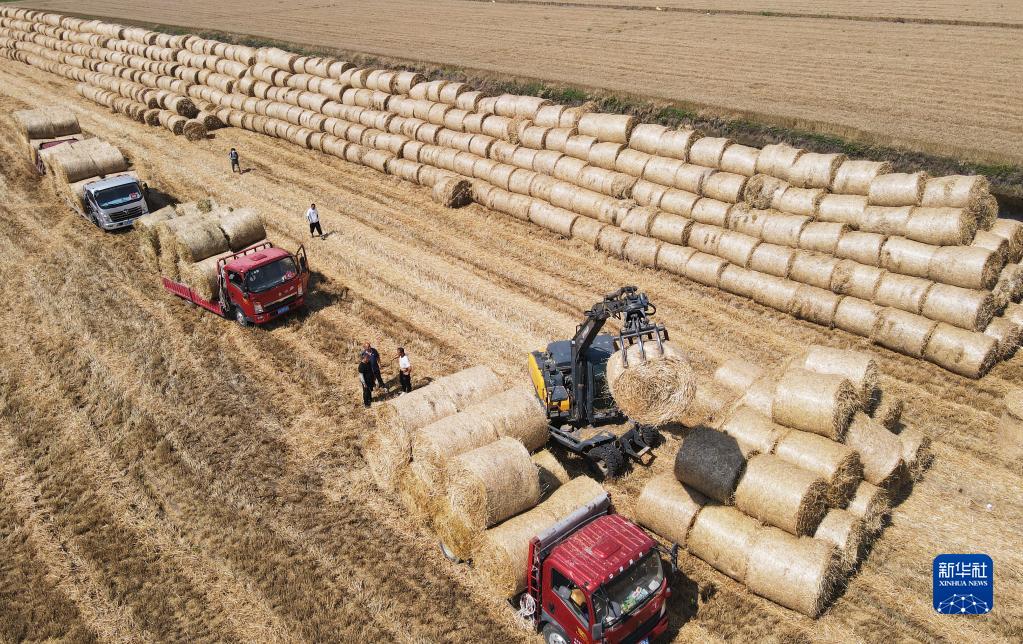 三夏時(shí)節,小麥豐收,各地農民及時(shí)將秸稈打捆回收。
