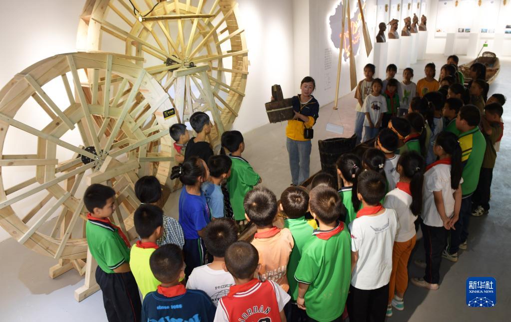 6月9日,學(xué)生在貴州省綏陽(yáng)縣中小學(xué)勞動(dòng)教育綜合實(shí)踐基地農耕文化教育館聽(tīng)老師介紹農具。