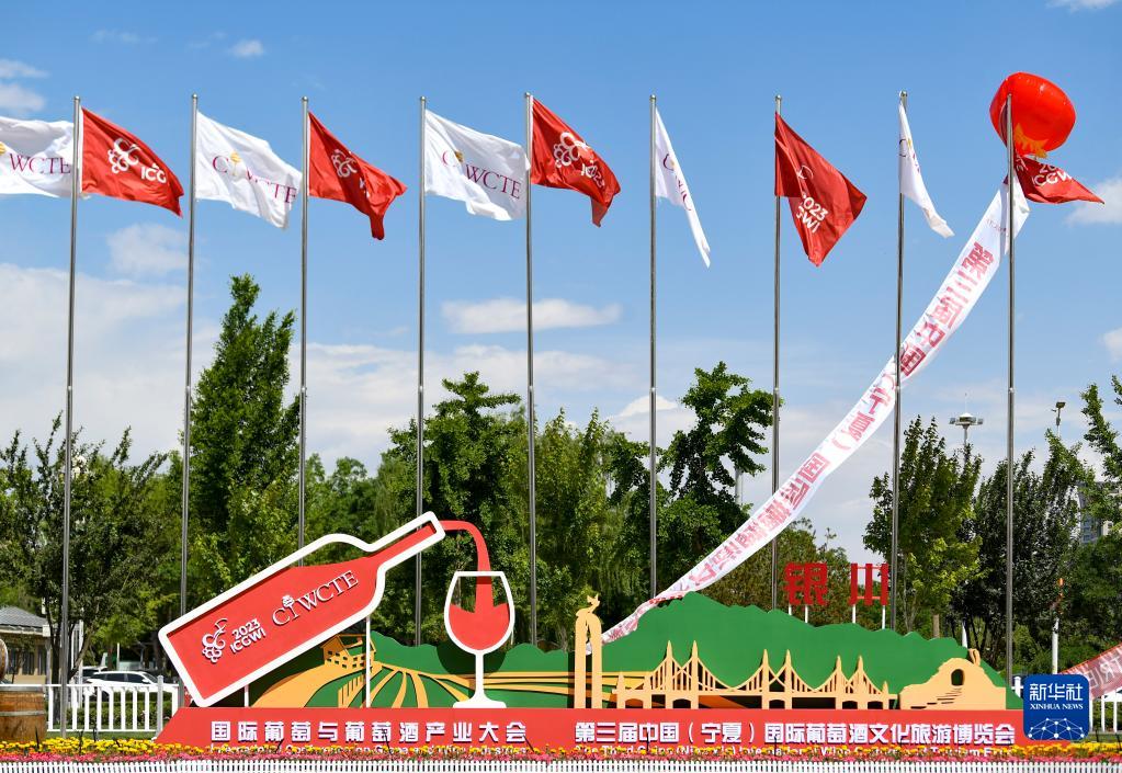 國際葡萄與葡萄酒產(chǎn)業(yè)大會(huì )、第三屆中國(寧夏)國際葡萄酒文化旅游博覽會(huì )開(kāi)幕式現場(chǎng)的外景(6月9日攝)。