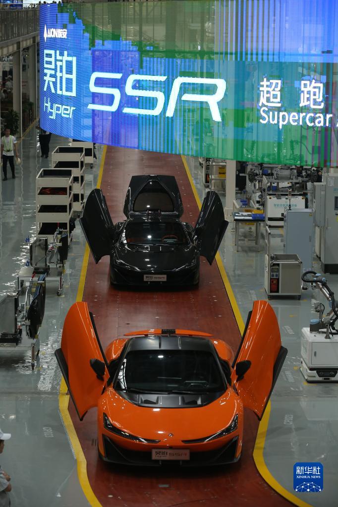 這是6月9日在位于廣州番禺的廣汽埃安智能生態(tài)工廠(chǎng)內拍攝的高端智能電動(dòng)超跑Hyper SSR生產(chǎn)線(xiàn)。
