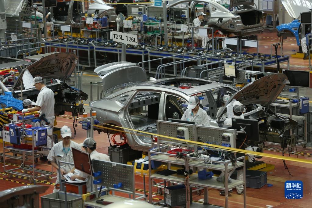 6月9日,工人在位于廣州番禺的廣汽埃安智能生態(tài)工廠(chǎng)內工作。
