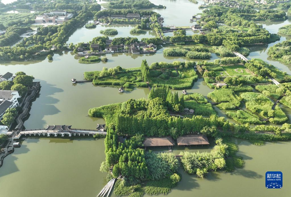 6月9日拍攝的沙家浜國家濕地公園景色(無(wú)人機照片)。