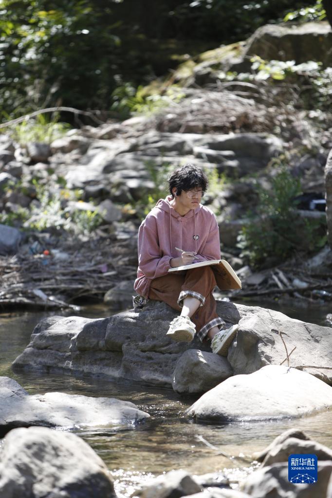 6月9日,學(xué)生在河南安陽(yáng)林州市石板巖鎮三畝地村寫(xiě)生。