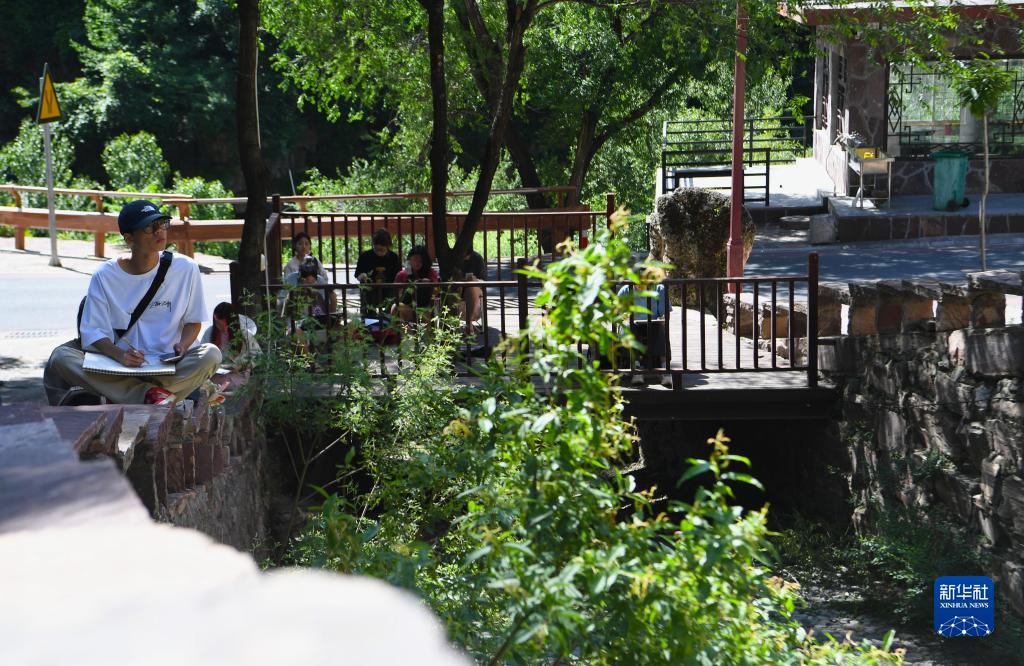 6月9日,學(xué)生在河南安陽(yáng)林州市石板巖鎮三畝地村寫(xiě)生。