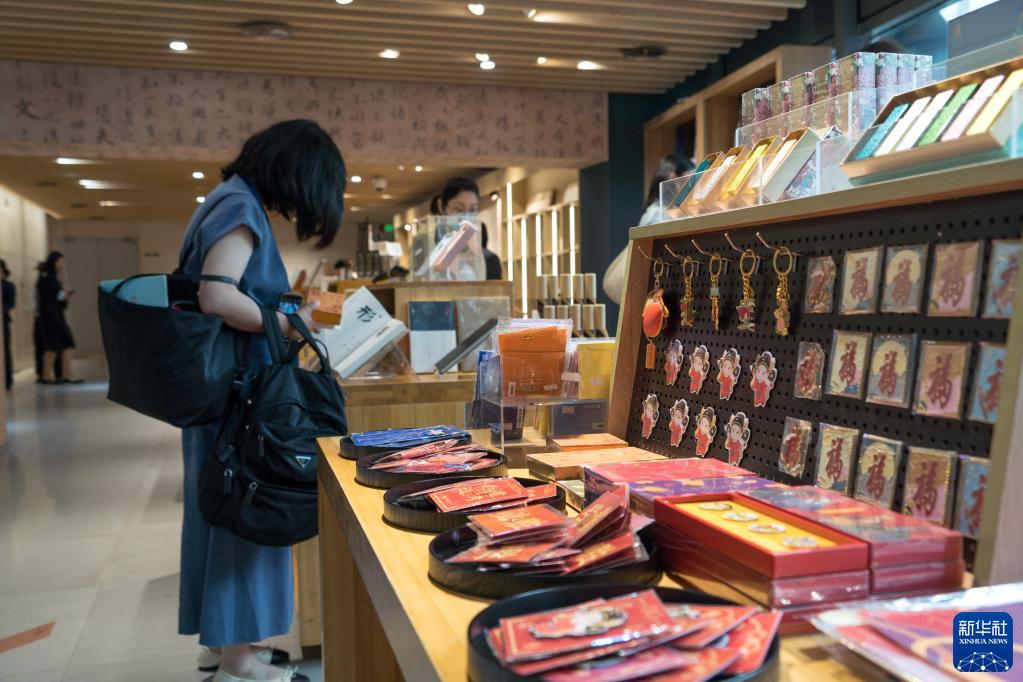 6月10日,活動(dòng)嘉賓在成都博物館內選購“漢字中國:方正之間的中華文明展”周邊文創(chuàng )產(chǎn)品。