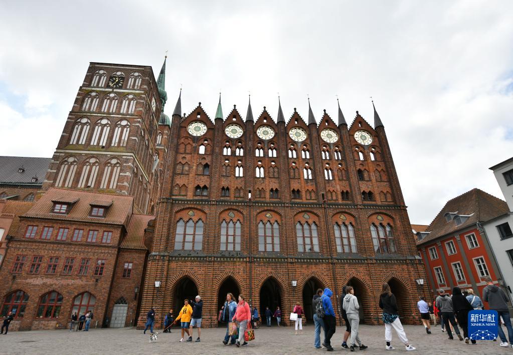這是6月1日拍攝的德國施特拉爾松德市政廳。
