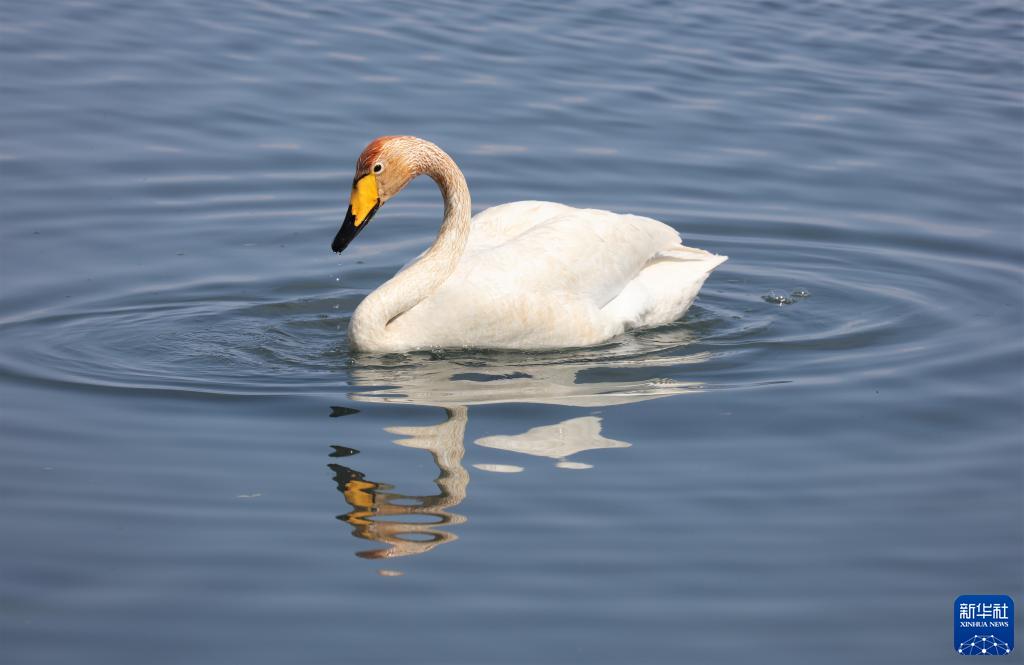 這是6月9日在蒙古國庫蘇古爾湖拍攝的天鵝。
