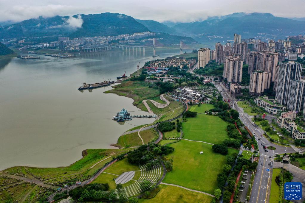 這是6月7日拍攝的位于重慶市云陽(yáng)縣的云陽(yáng)城區環(huán)湖綠道(無(wú)人機照片)。當地將生態(tài)治理與生態(tài)修復結合起來(lái),兼顧城市旅游和運動(dòng)休閑等功能需要,打造環(huán)縣城兩江四岸33公里綠道。