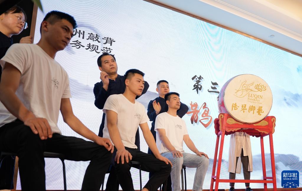 6月10日,在揚州舉行的首屆全國傳統修腳術(shù)非遺傳承人峰會(huì )上,學(xué)員展示敲背技藝。