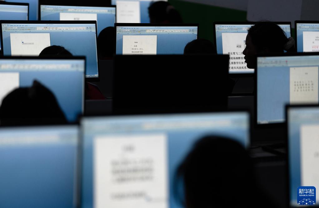6月5日,扎西宗鄉完全小學(xué)六年級的學(xué)生在上計算機課。