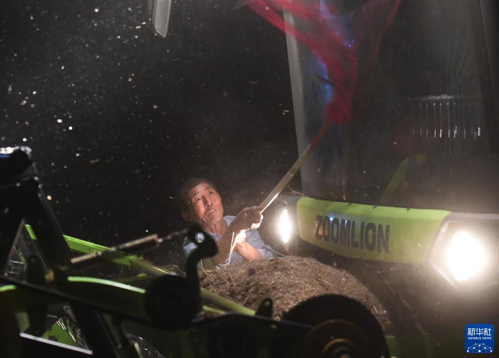 麥屑飛舞,煙塵四起。遠遠望去,在深夜的麥田里來(lái)回穿梭的收割機,像一團時(shí)大時(shí)小的“火球”在滾動(dòng)。雖然視野遠不如白天,但對于有著(zhù)二十多年“駕齡”的村民袁榮鵬來(lái)說(shuō),沒(méi)什么大不了。因此,村支部書(shū)記把最難收割的地塊交給了他。