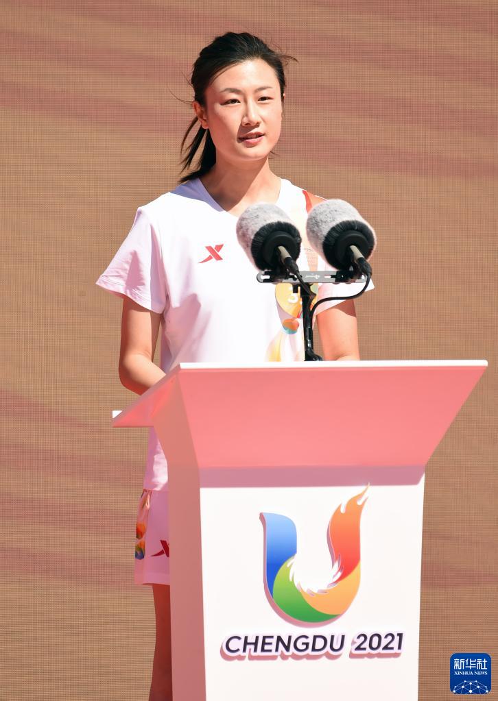 6月10日,大學(xué)生火炬手代表丁寧發(fā)言。