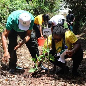 6月9日,志愿者在加納首都阿克拉市區一片林地栽種樹(shù)苗。