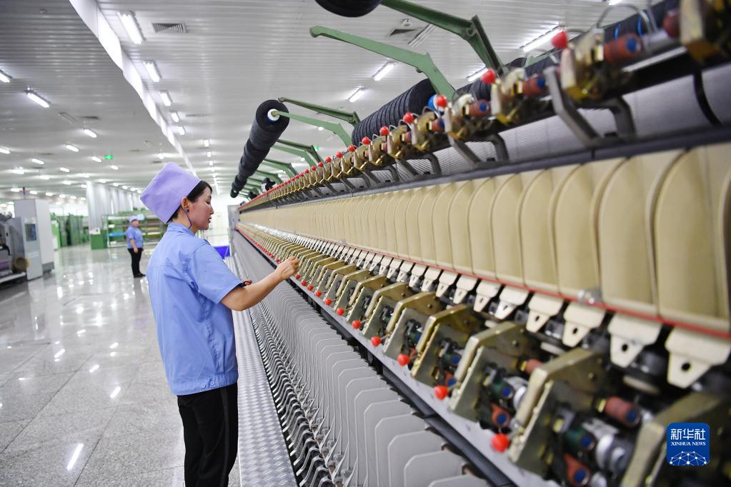 6月10日,工作人員在寧夏靈武羊絨產(chǎn)業(yè)園區一家羊絨加工企業(yè)紡織車(chē)間作業(yè)。