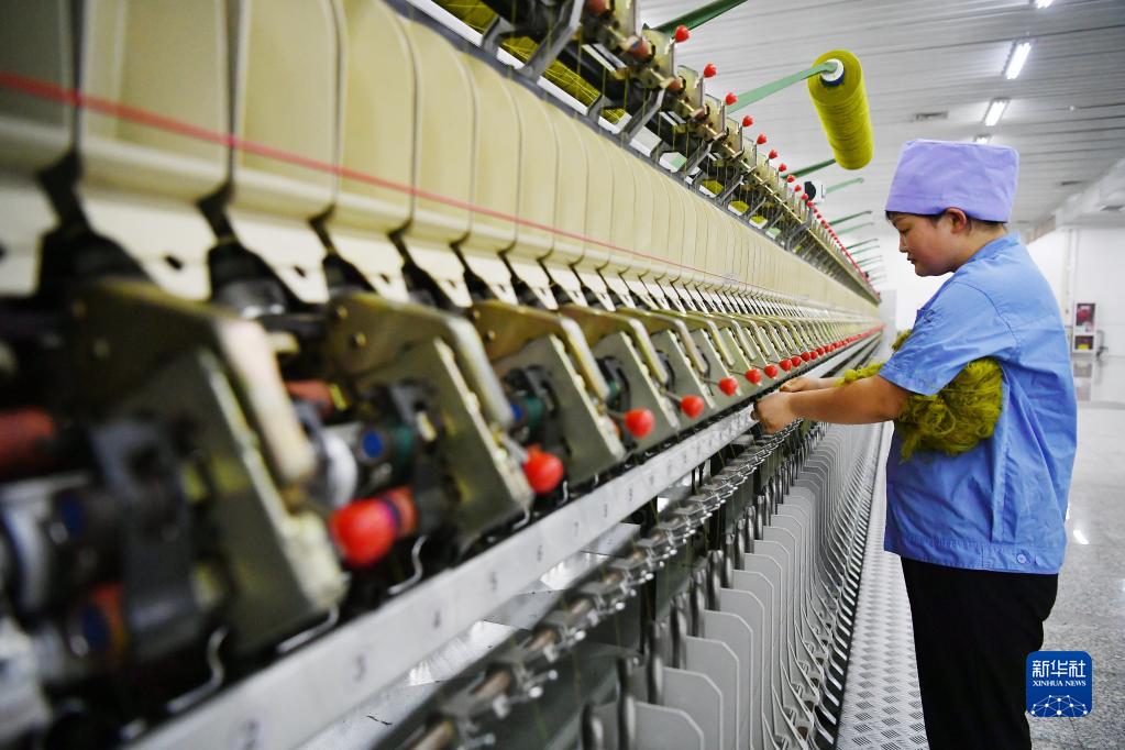 6月10日,工作人員在寧夏靈武羊絨產(chǎn)業(yè)園區一家羊絨加工企業(yè)調整設備。