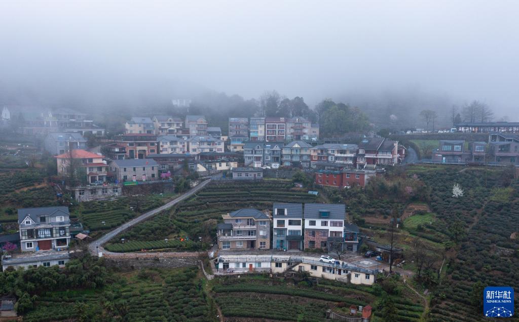 空中俯瞰云霧中的浙江杭州富陽(yáng)里山鎮安頂村(3月23日攝,無(wú)人機照片)。安頂村海拔700多米,一年中有200多天可觀(guān)賞“安頂云?!逼婢?,當地百姓依托高山云霧茶以及特色鄉村旅游產(chǎn)業(yè),走出了一條茶旅融合的新農村共同富裕發(fā)展模式。