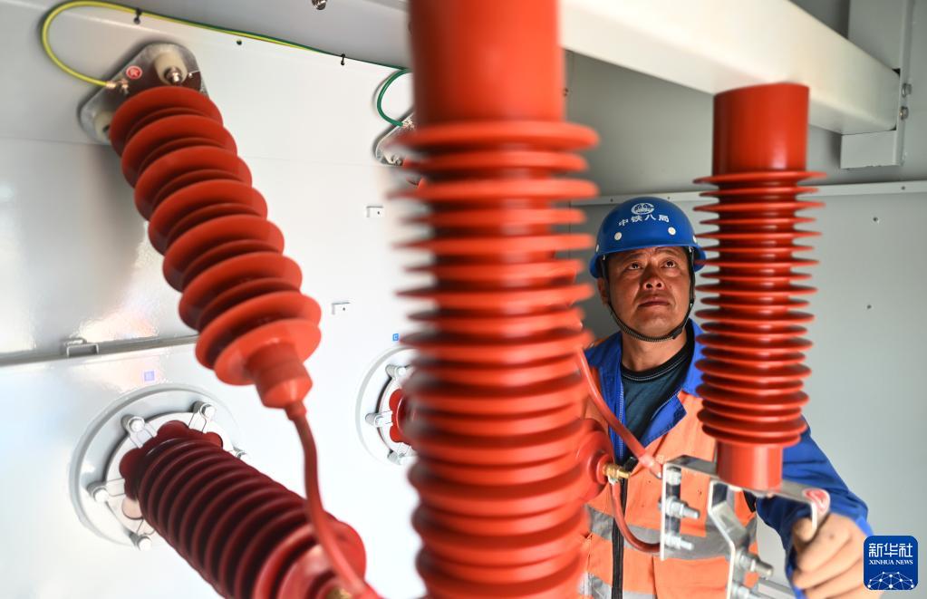 6月10日,中鐵八局施工人員在海西蒙古族藏族自治州德令哈市中國華電50萬(wàn)千瓦光伏項目現場(chǎng)進(jìn)行檢查。