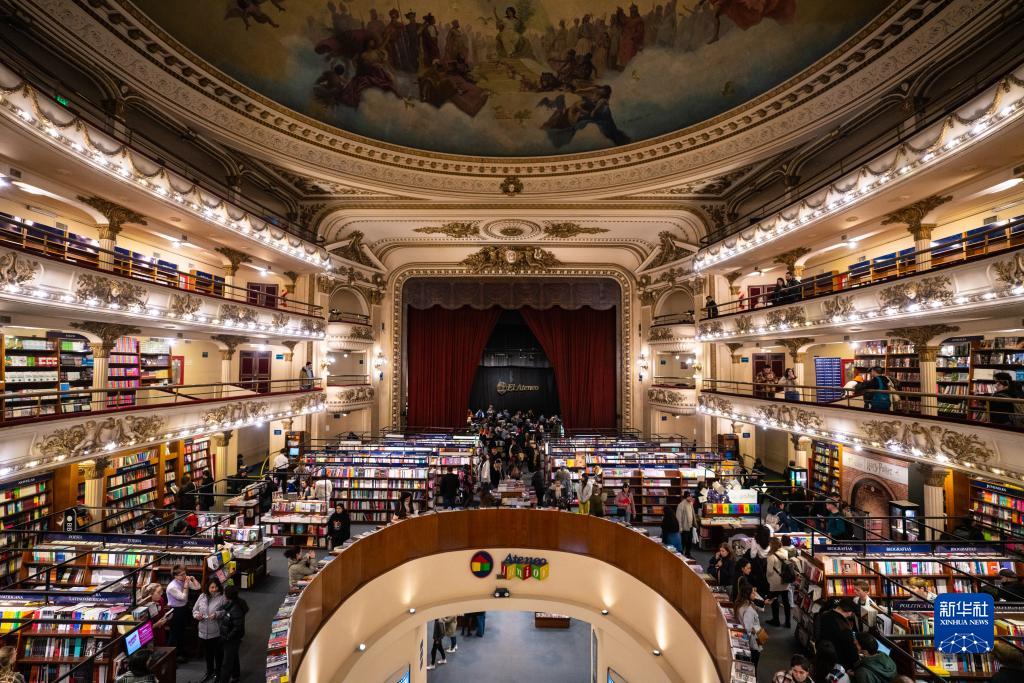 這是6月10日在阿根廷首都布宜諾斯艾利斯拍攝的雅典人書(shū)店。