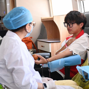 6月11日,報名參加無(wú)償獻血的青年志愿者在進(jìn)行獻血前的身體評估、化驗檢查。