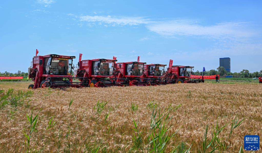 當日,天津市2023年“三夏”機械化生產(chǎn)現場(chǎng)推動(dòng)會(huì )在天津市靜海區蔡公莊鎮舉行,30余臺(套)農機設備現場(chǎng)展開(kāi)小麥機收、玉米播種、田間植保等機械化作業(yè),20余臺(套)智能、高效農機具進(jìn)行了現場(chǎng)展示,標志著(zhù)天津市“三夏”生產(chǎn)拉開(kāi)大幕,大面積機收作業(yè)正式啟動(dòng)。