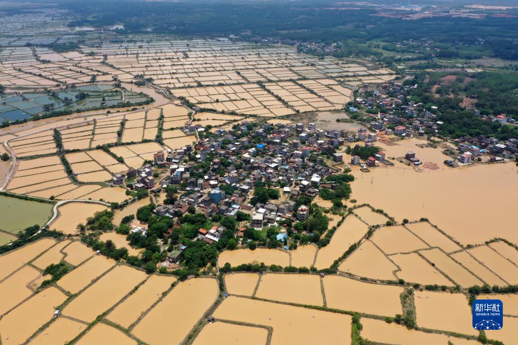 廣西合浦縣白沙鎮受強降雨影響的村莊(6月11日攝,無(wú)人機照片)。