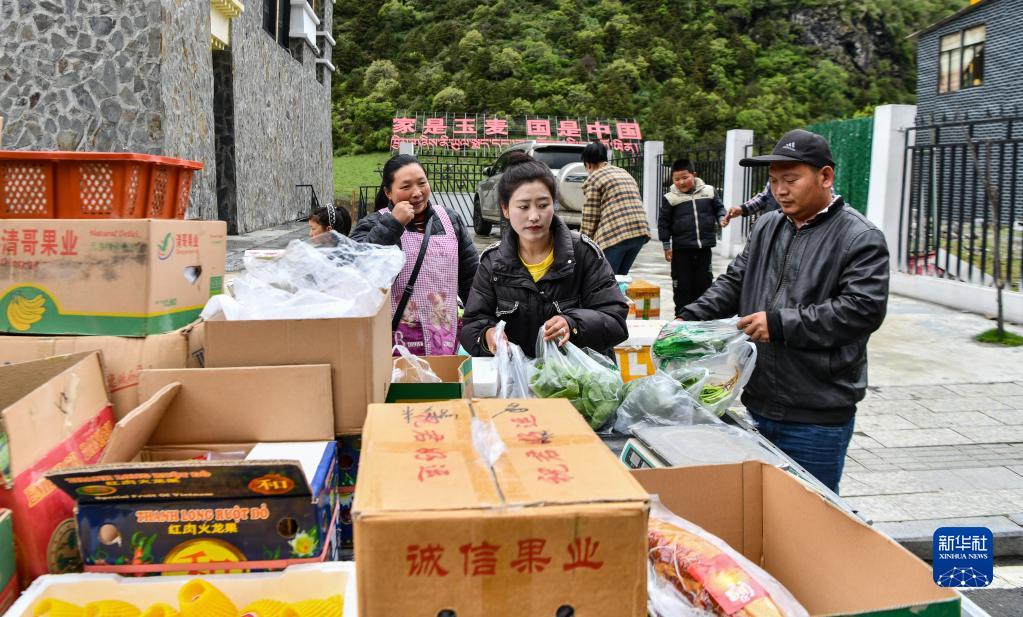 玉麥居民在選購水果和蔬菜(6月10日攝)。