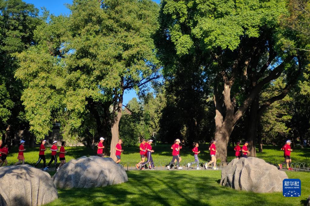 6月3日,跑步愛(ài)好者在北京天壇公園內晨跑(手機照片)。新華社記者 鞠煥宗 攝