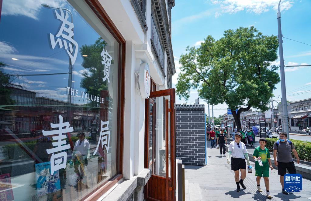 6月11日,位于北京地安門(mén)外大街一處文物建筑內,以北京中軸線(xiàn)為主題的書(shū)店吸引路人的目光。新華社記者 陳鐘昊 攝
