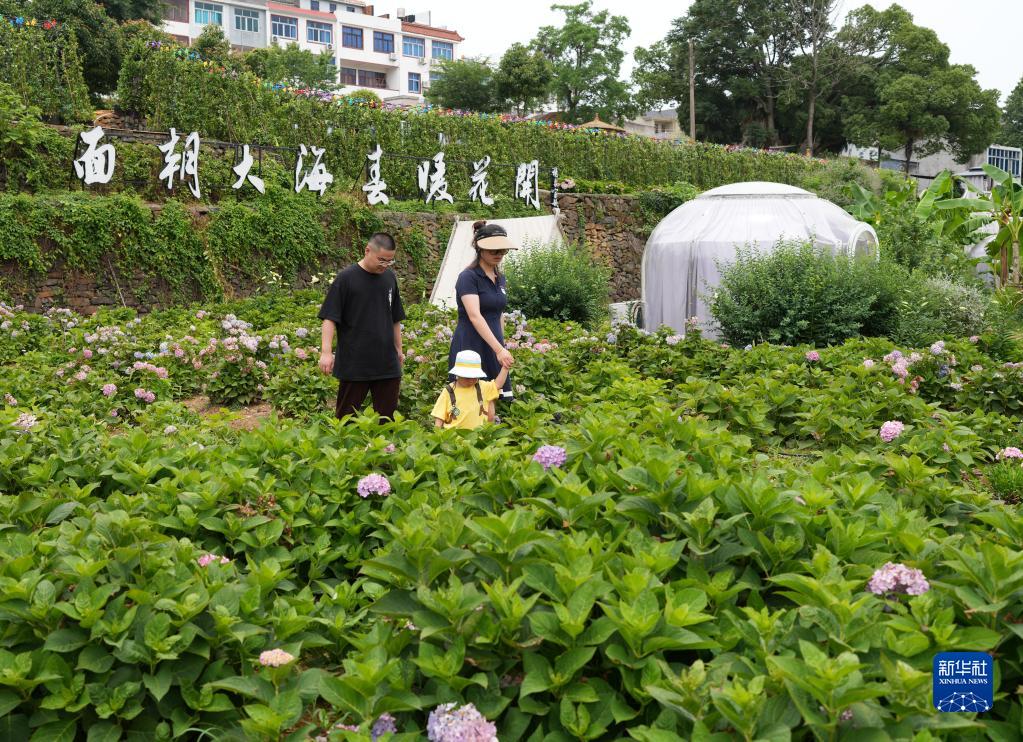 6月13日,人們在強蛟鎮一處花海景觀(guān)游覽。