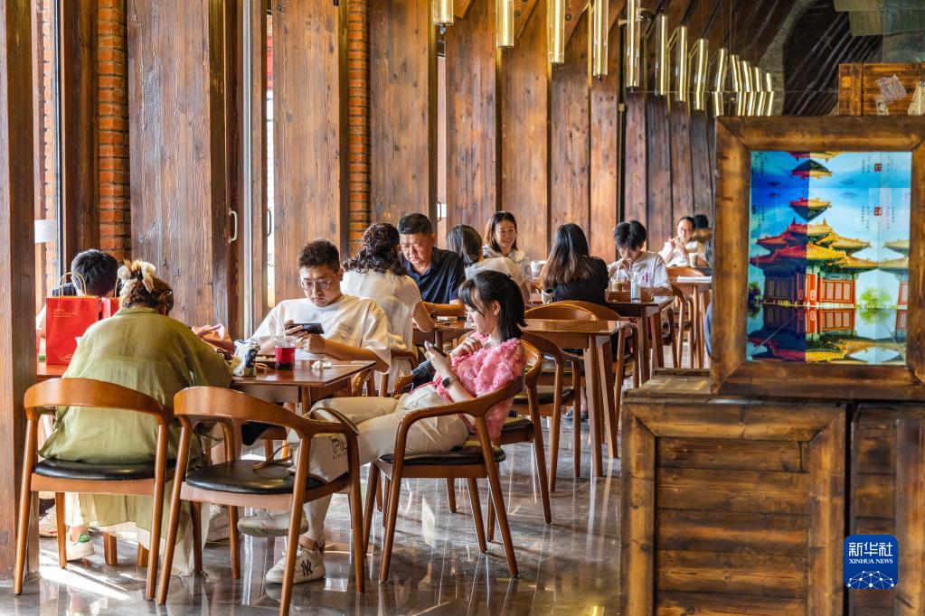 6月10日,在重慶故宮文物南遷紀念館,游客在角樓咖啡店內休閑體驗。